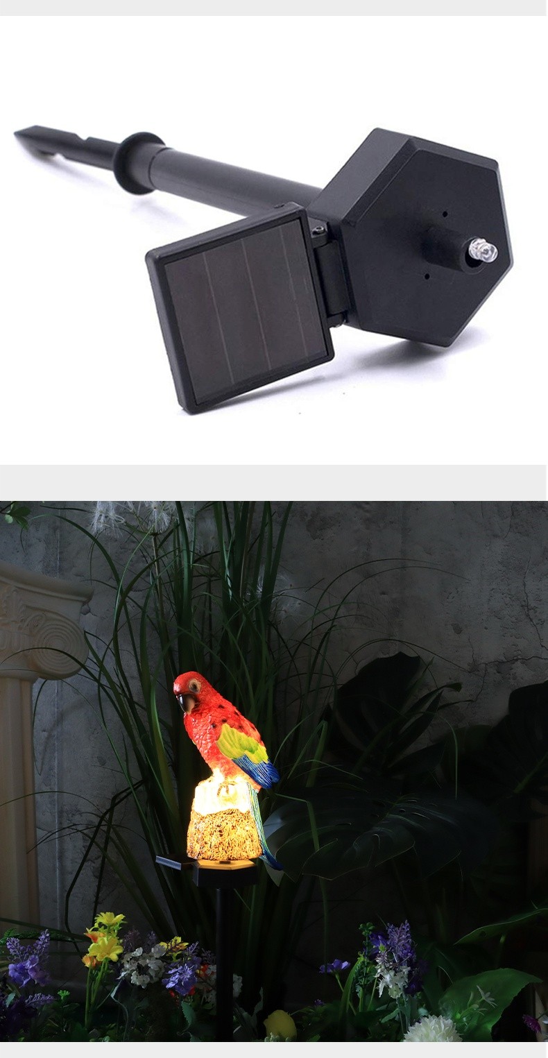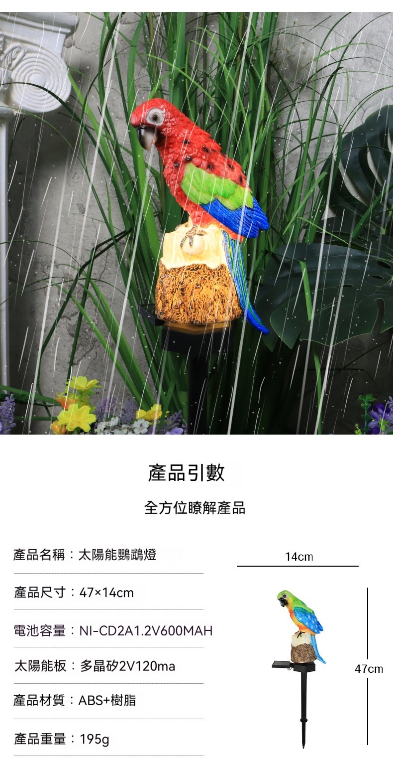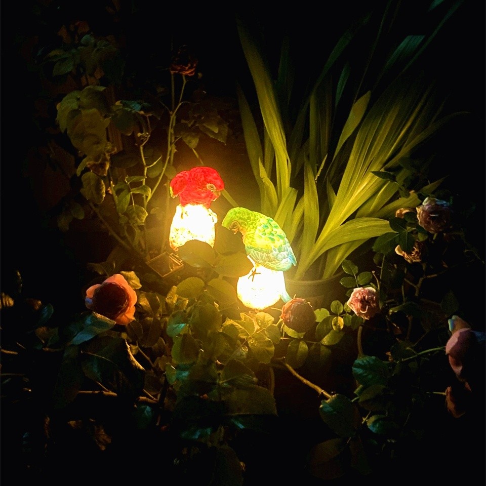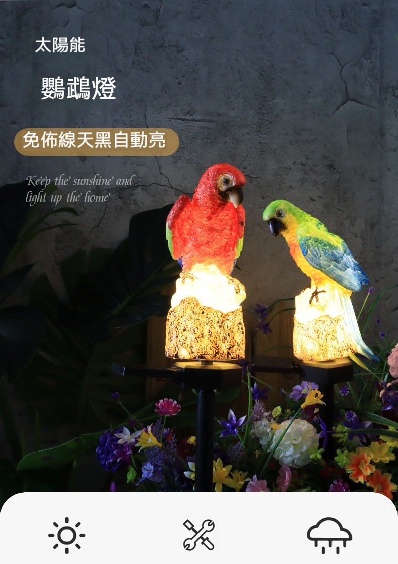 【會發光的太陽能鸚鵡】✅太陽能永動系統✅日落自動點燈✅防水抗颱✅台灣手工樹脂工藝|免佈線免電費的魔法裝飾