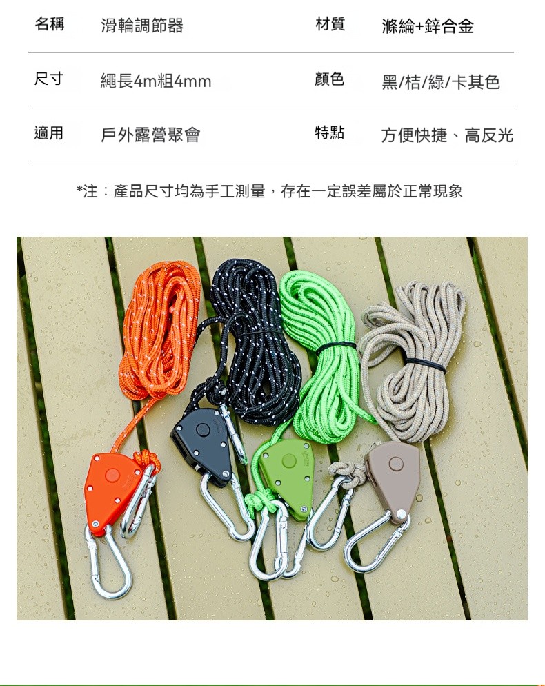 【✨ 戶外控必備神器】全能調節防風繩組✅ 4米反光夜視 ✅ 一拉即鎖滑轮 ✅ 360度固定錨點 ✅ 露營/天幕/吊床通用